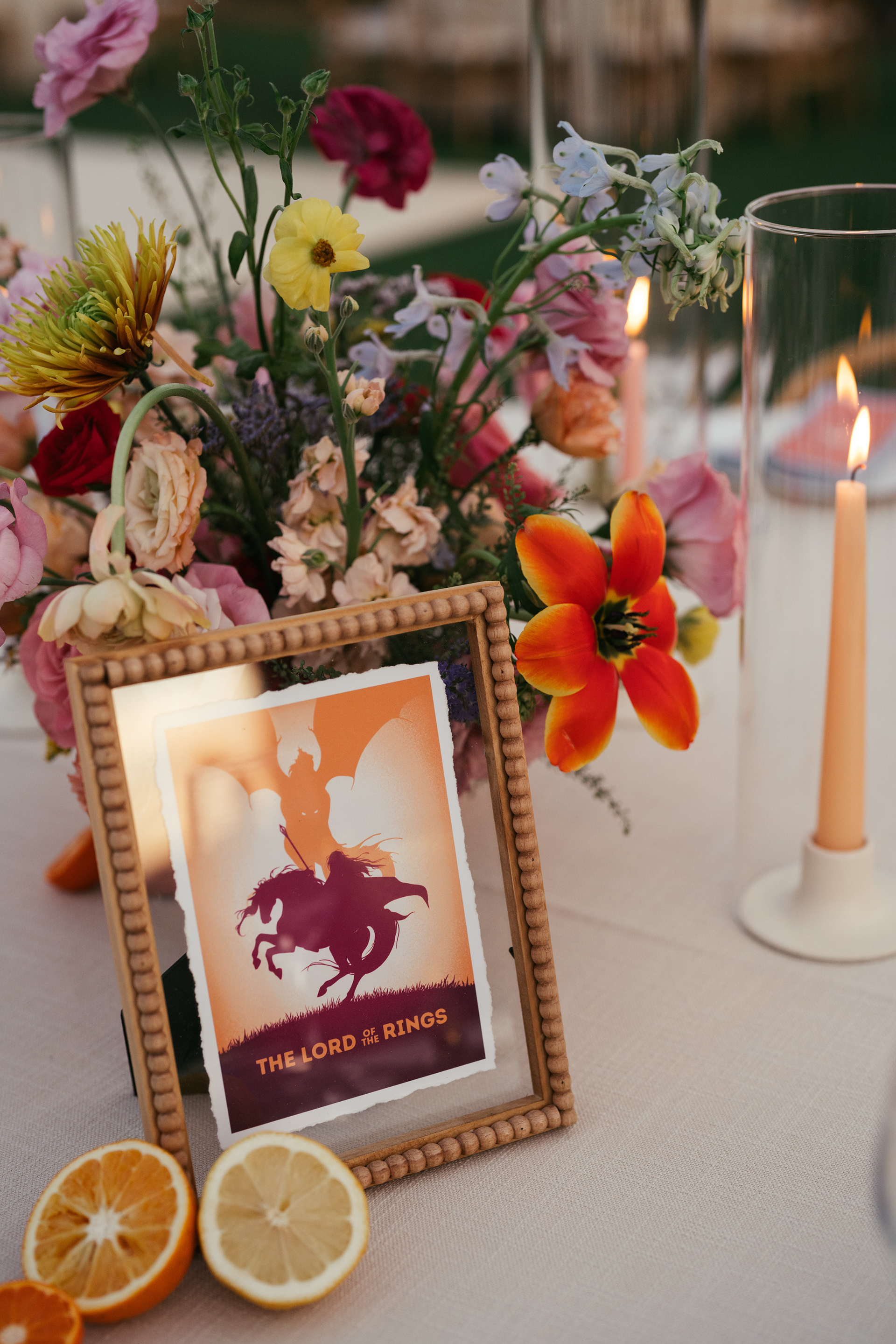 Movies have always been a special part of our relationship, from the films that made us laugh to the ones that sparked deep conversations. Instead of traditional table numbers, we assigned each table a film that held personal meaning to us—ranging from the silly to the sentimental.