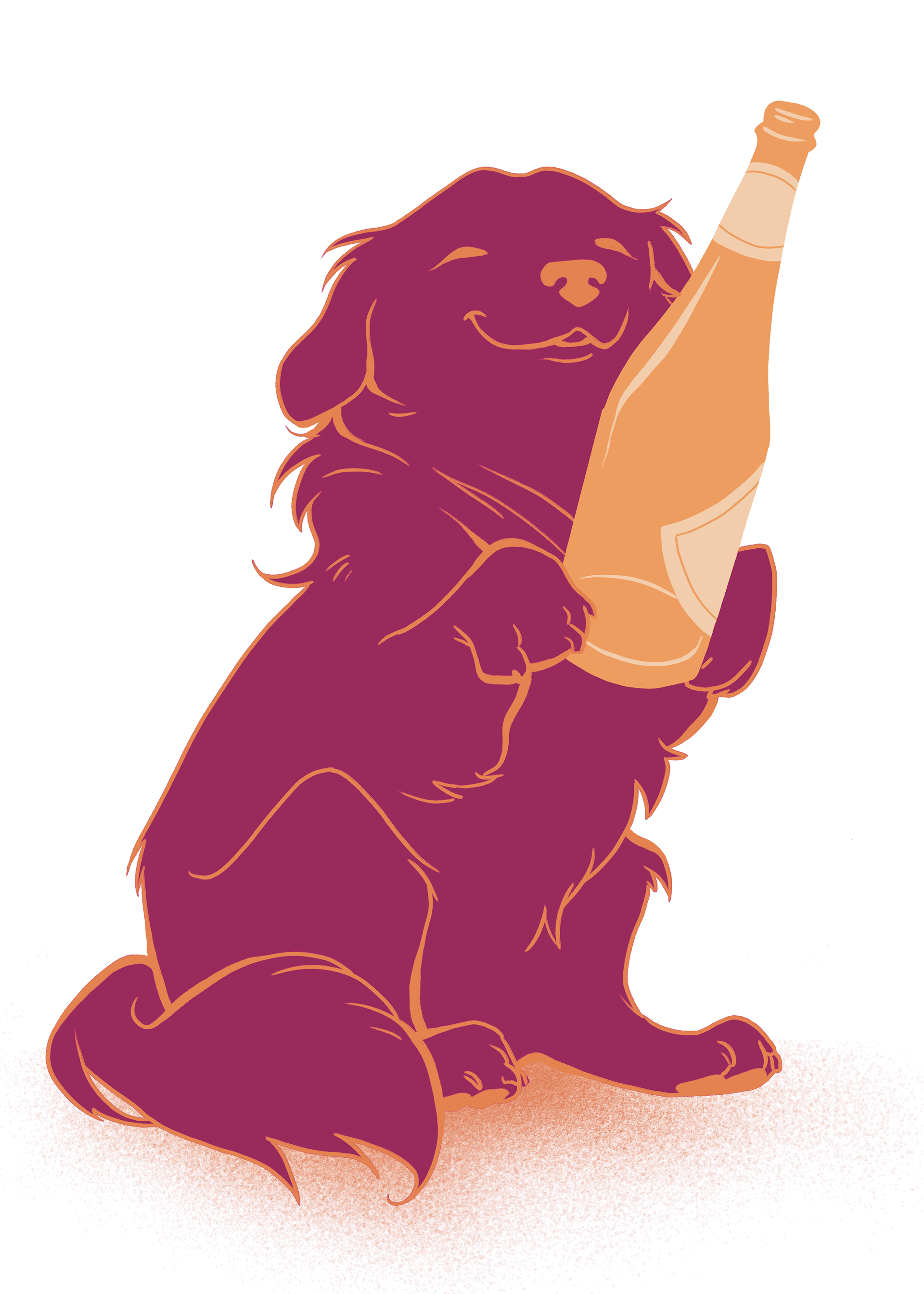 Our bar menu, including an illustration of our dog holding a bottle of champagne